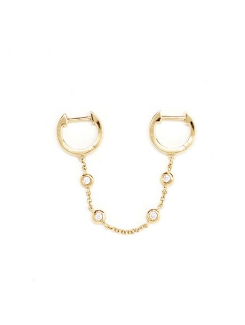 Double Huggie with Diamond Bezel